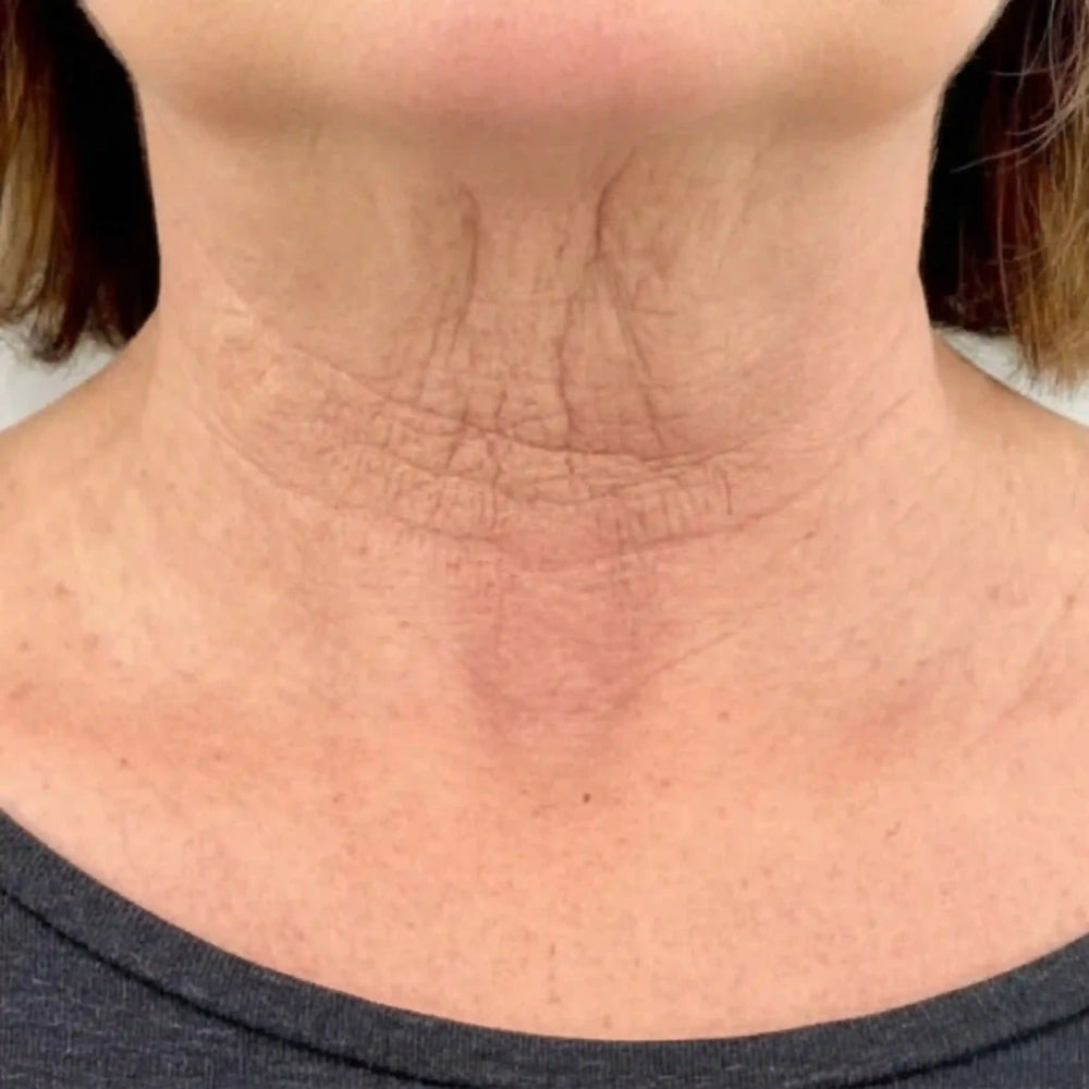 Ayuda a suavizar la apariencia de arrugas del cuello, mejorar la firmeza de la piel y definir visualmente el contorno mandibular.